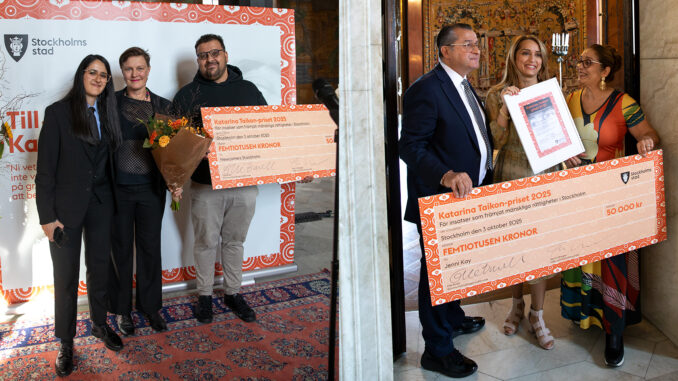 Vid en ceremoni i Stadshuset idag tillkännagavs pristagarna av årets Katarina Taikon-pris, Stockholms stads pris som hyllar insatser för mänskliga rättigheter. I år går priset till Newcomers Stockholm och Jenni Kay.