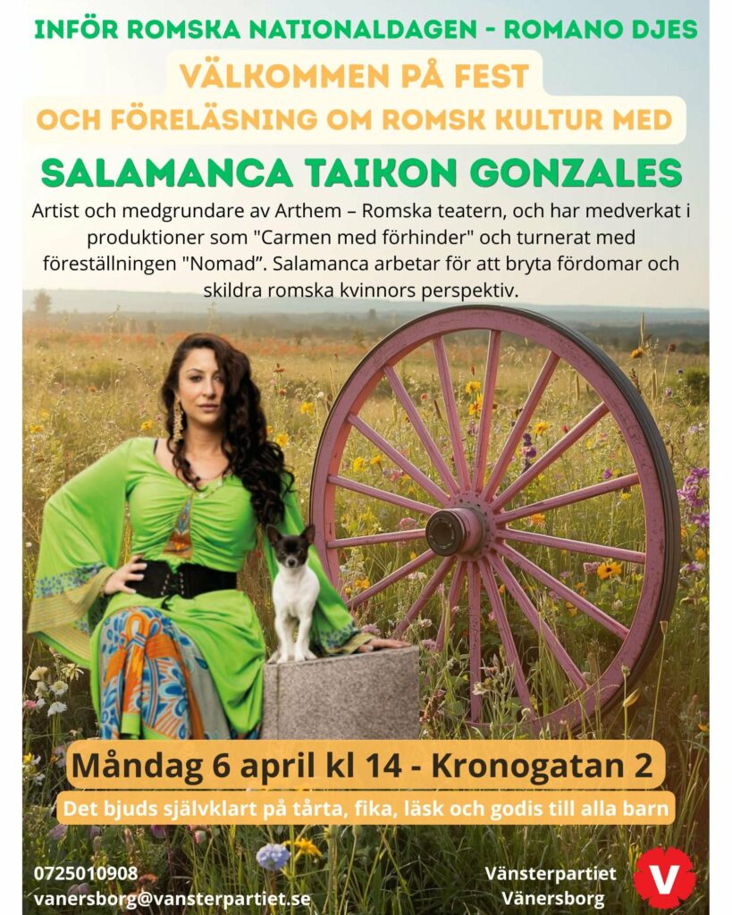 Vänsterpartiet Vänersborg ordnar fest och romsk temadag med Salamanca på måndag. Missa inte tillfället att gå på förfest inför den 8 april.