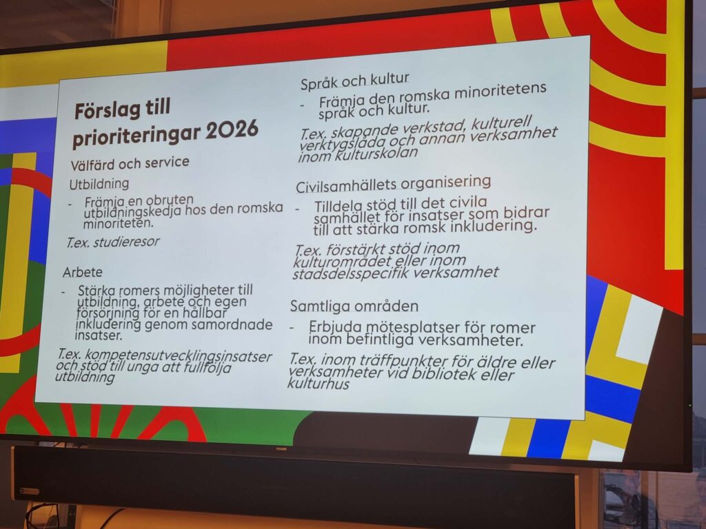 De som fanns med från minoriteten romer lyfte betydelsen av egenmakt och vikten av att pengarna inte ska försvinna in i kommunens övriga kostnader, genom att till exempel försvåra ansökningarna genom att lägga ut det på stadens olika förvaltningar så att olika bidrag ska sökas från olika förvaltningar.